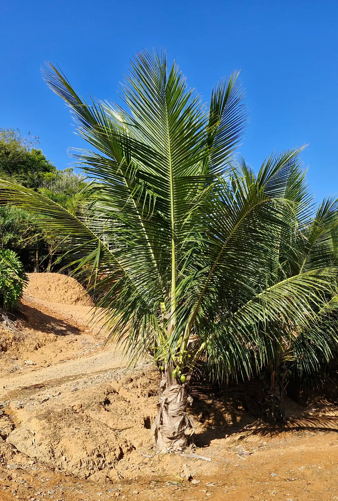 O coqueiro-anão (Cocos nucifera var. anã) é uma palmeira de porte elegante e compacto, ideal para produção de cocos e para projetos paisagísticos. Quando adulta, atinge entre 4 e 6 metros de altura, com estipe esguio e copa formada por longas folhas pinadas verdes brilhantes. Produz abundantes cachos de cocos, doces e muito valorizados no mercado. É excelente para regiões litorâneas e tropicais, exigindo solos arenosos, férteis e bem drenados, além de boa insolação. Adapta-se bem a fazendas, sítios, chácaras e áreas urbanas. Fornecemos mudas adultas, prontas para replantio e produção.